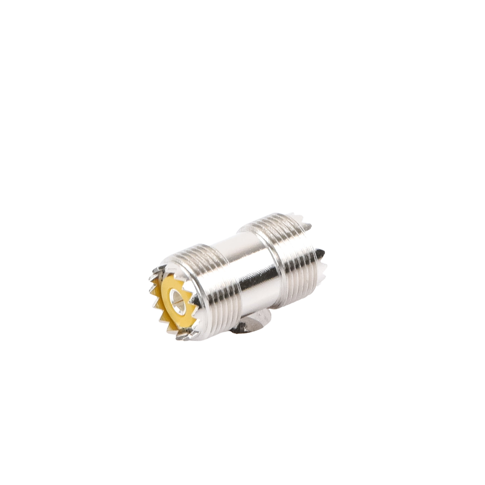 Adaptador Barril en Línea, de Conector UHF Hembra (SO-239) a UHF Hembra (SO-239), Niquel/ Plata/ Dap.