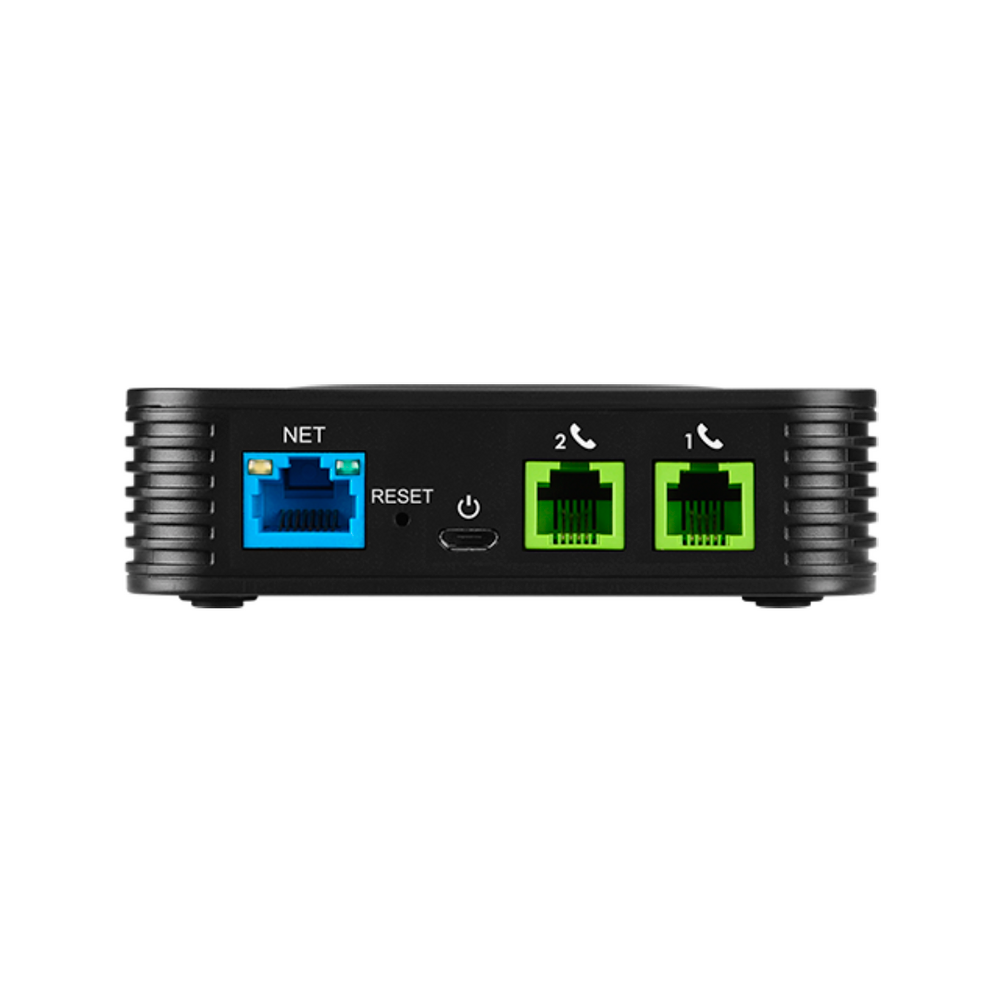 - Admite 2 perfiles SIP a través de 2 puertos FXS y un puerto 10 / 100Mbps