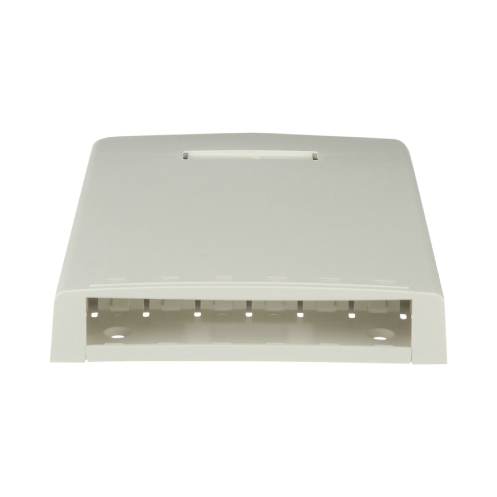 Las cajas de montaje en superficie de fibra/multimedia están disponibles en opciones de 6 y 12 puertos e incluyen un accesorio incorporado con un diseño único que asegura el cable en su lugar y puede almacenar hasta 24 metros de cable de fibra óptica con búfer. La caja incluye orificios ciegos laterales y traseros para la entrada de cables. La tapa incluirá un espacio para etiquetas con etiqueta y tapa para identificación que oculta el tornillo que fija la tapa a la base. Las cajas se instalan fácilmente con el adhesivo o los tornillos de montaje suministrados. La caja de 6 puertos incluyen ranuras para iconos sobre los puertos.