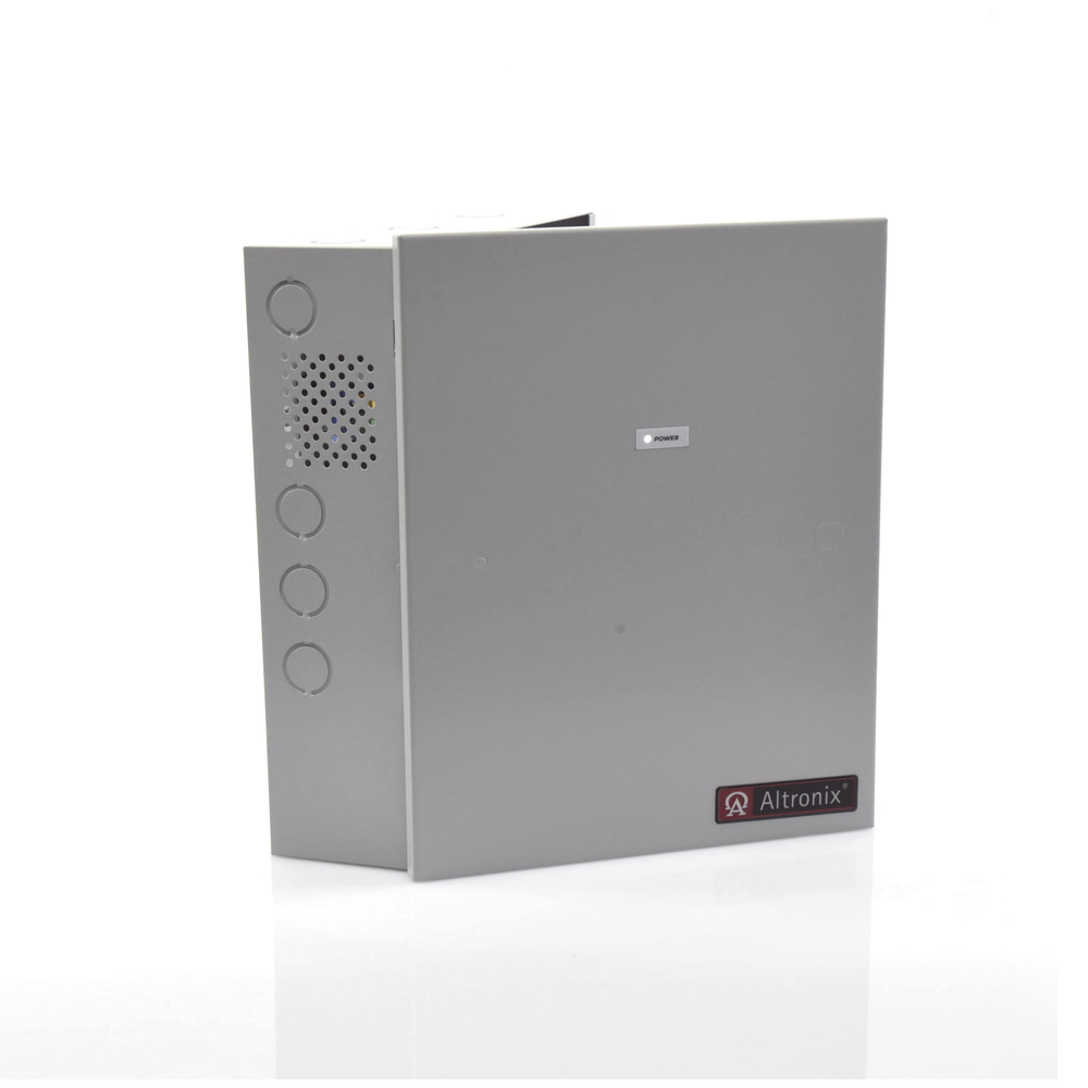 Fuente para aplicaciones en control de acceso, con capacidad de respaldo para 12 y 24 Vcd @ 4 A , con 8 circuitos de control ( NO ) y 8 circuitos de control trigger voltaje de entrada de : 115 Vca.