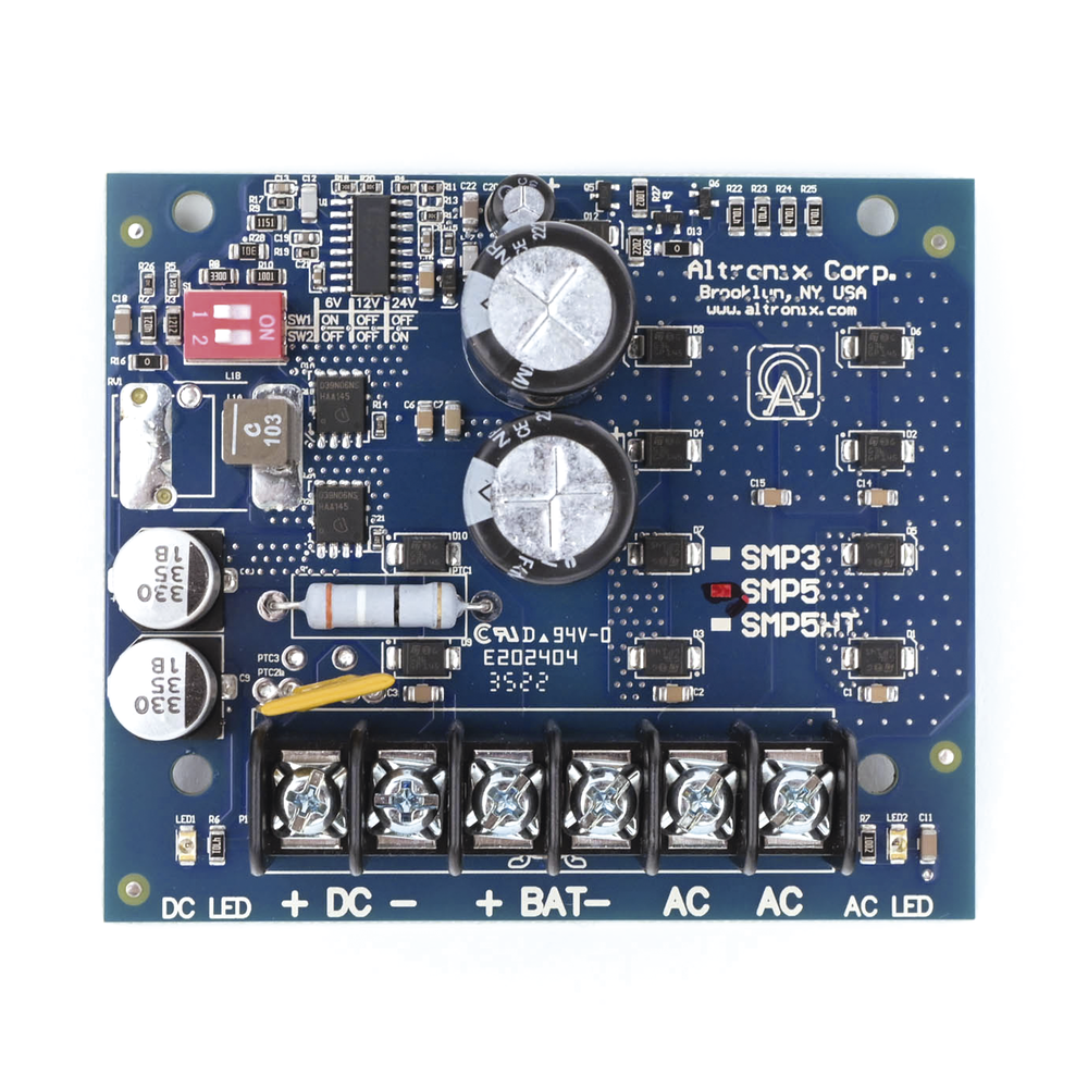 La fuente de alimentación / cargador SMP5 convierte una entrada de CA de bajo voltaje en una salida de 6 V CC, 12 V CC o 24 V CC. Esta unidad tiene una amplia gama de aplicaciones para accesorios de control de acceso, seguridad y sistemas de CCTV que requieren energía adicional.