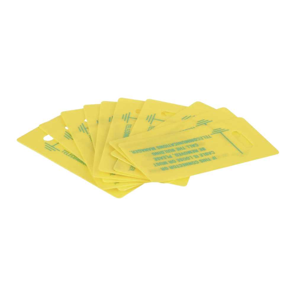 - El kit incluye todo lo necesario para etiquetar adecuadamente los cables; diez cinchos de retardantes de llama y diez etiquetas de plástico rígido de color amarillo impresas.