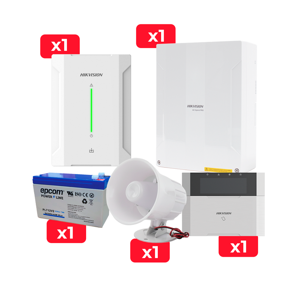 - 1 x DS-PHA64-LP Panel de alarma Ax Hibryd Pro de 64 zonas.