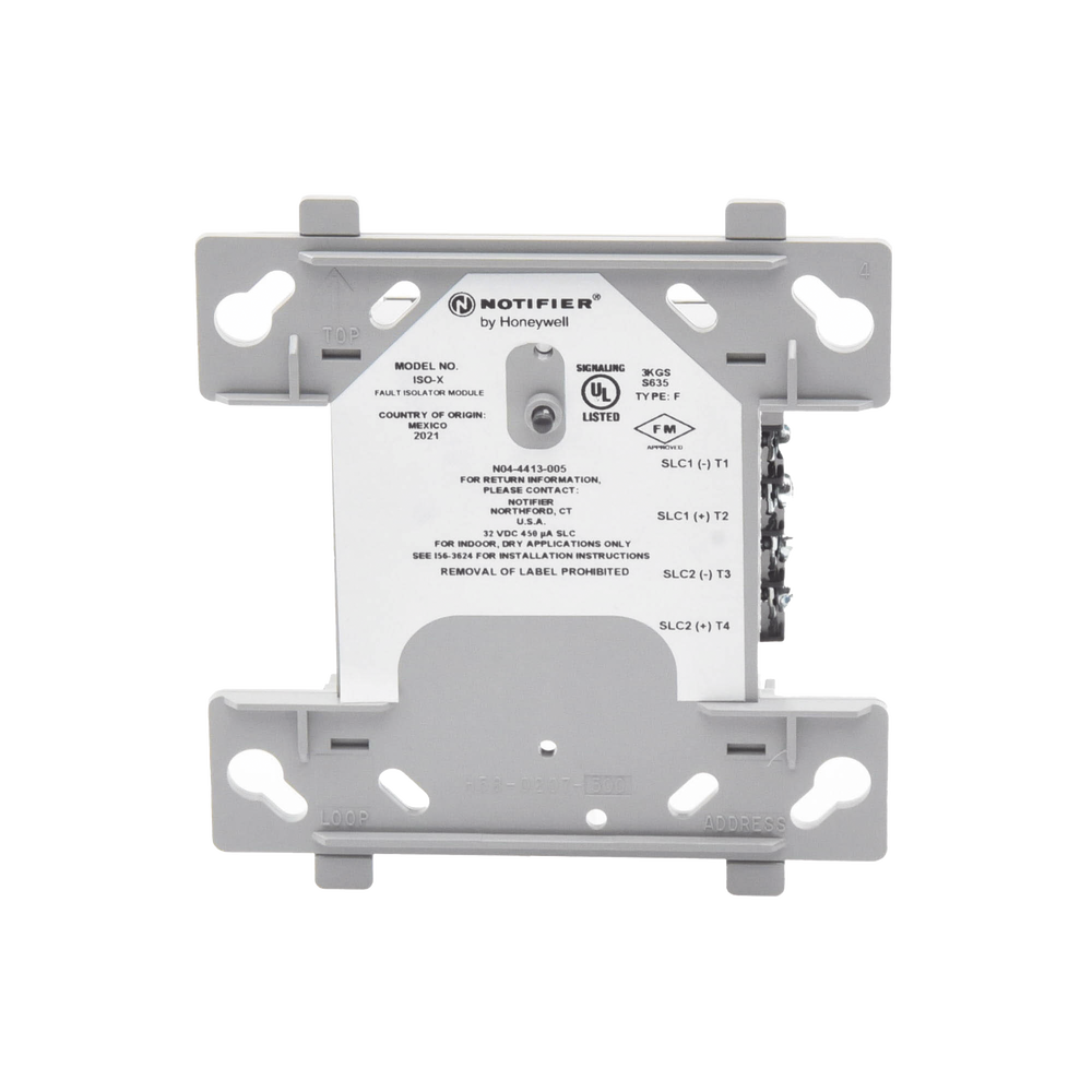 El módulo aislante de fallas ISO-X se emplea con los modelos NFS-3030, NFS2-3030, NFS-640, NFS2-640 y NFS-320 para proteger al sistema contra cortocircuitos cable a cable en los lazos del SLC.