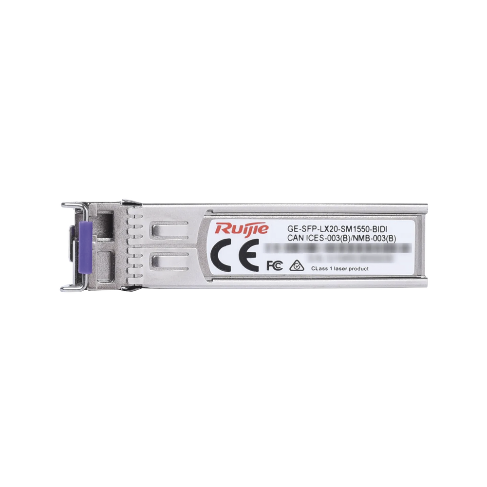 El GE-SFP-LX20-SM1550-BIDI está alineado con las especificaciones ópticas IEEE 1000BASE-LX y admite una longitud de enlace de hasta 20 kilómetros a través de un SMF con un conector BIDI LC. Adopta el factor de forma SFP y opera a una longitud de onda de 1550 nm. El transceptor cumple con los estándares IEEE 802.3, SFF-8472, SFF-8431, SFF-8432, SFP+ MSA y RoHS.
