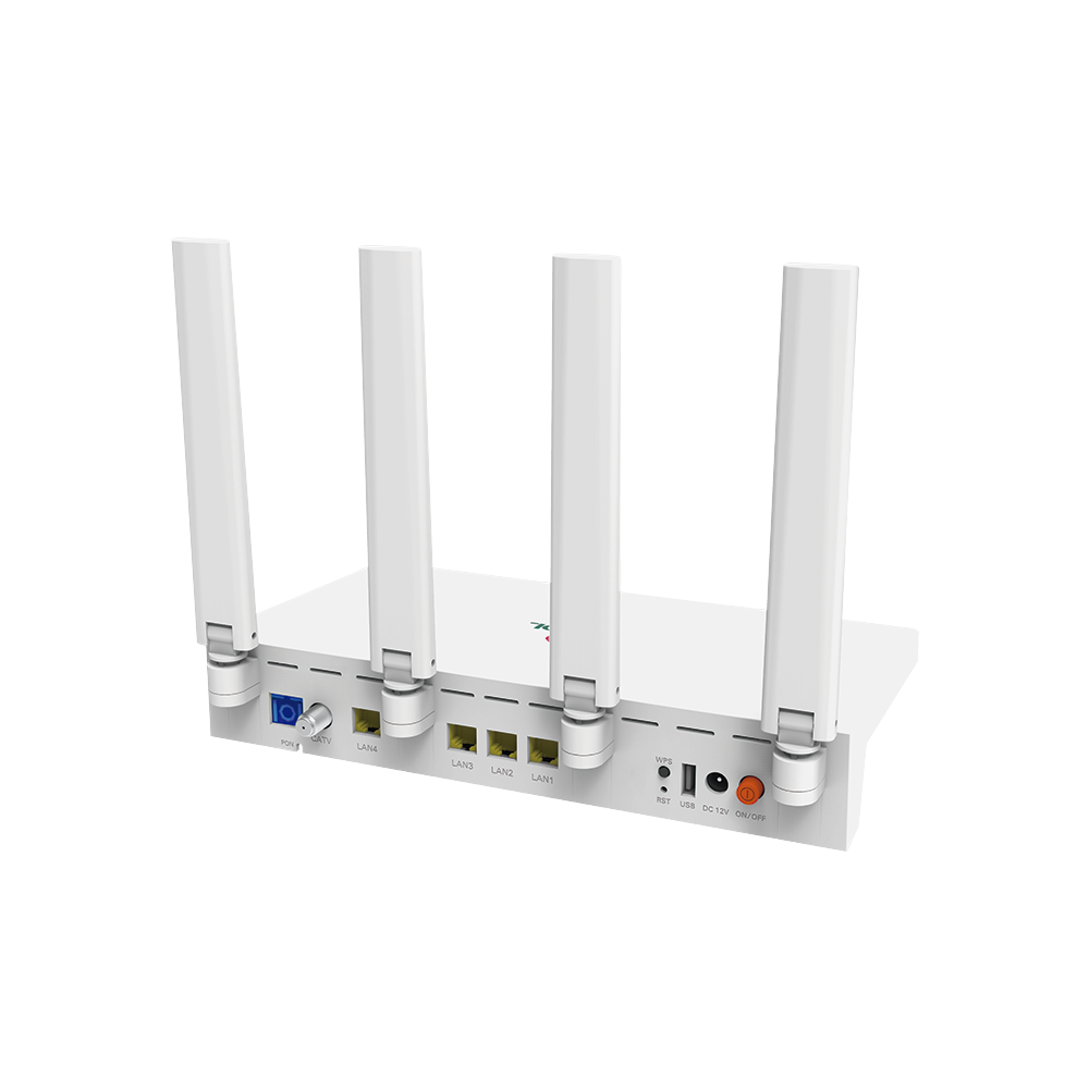 Es una ONT WI-FI6 de doble banda con velocidad superior a la generación anterior de ONT AC1200, la tasa de ONT AX15 es superior al 30%. La tecnología OFDMA reduce la latencia en un 75% y ahorra hasta el 30% del consumo eléctrico. Basado en chip de alto rendimiento y funciones para Encendido/Apagado de CATV.