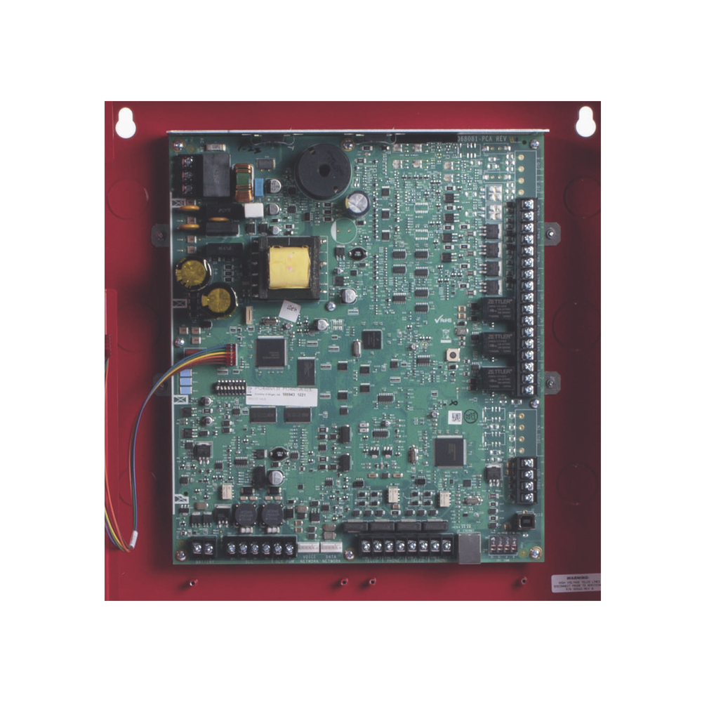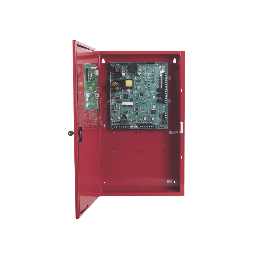 Una vía común de comunicación y anunciación de hasta 17 paneles puede ser conectada por cobre o fibra óptica. Un panel designado es configurado como el comunicador para los demás paneles dentro de la red. También tiene un comunicador telefónico de línea telefónica dual POT y un comunicador IP, de manera opcional se puede instalar un comunicador celular.