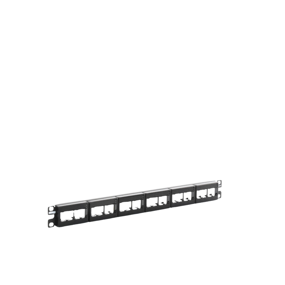 Los paneles de parcheo modulares consisten en un panel de metal con placas frontales moldeadas a presión que se pueden soltar por la parte delantera. Los paneles de conexión aceptan todos los módulos Mini-Com® para aplicaciones UTP, STP, fibra o A / V y deben montarse en Rackso o Gabinetes estándar de 19′. Los paneles de conexión estan disponibles en densidad estándar de 24 y 48 puertos y alta densidad de 72 puertos. Los paneles de conexión angulados se diseñarán en un ángulo óptimo para ayudar a enrutar el cable.