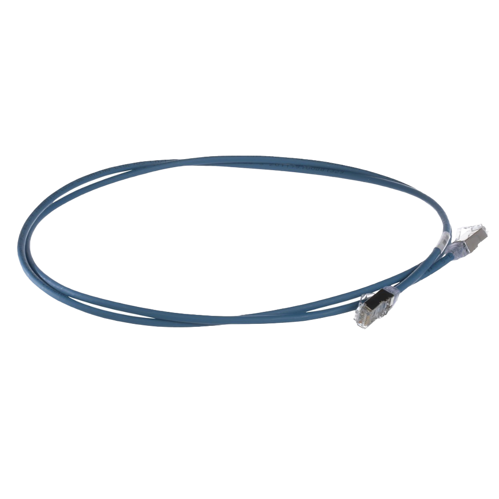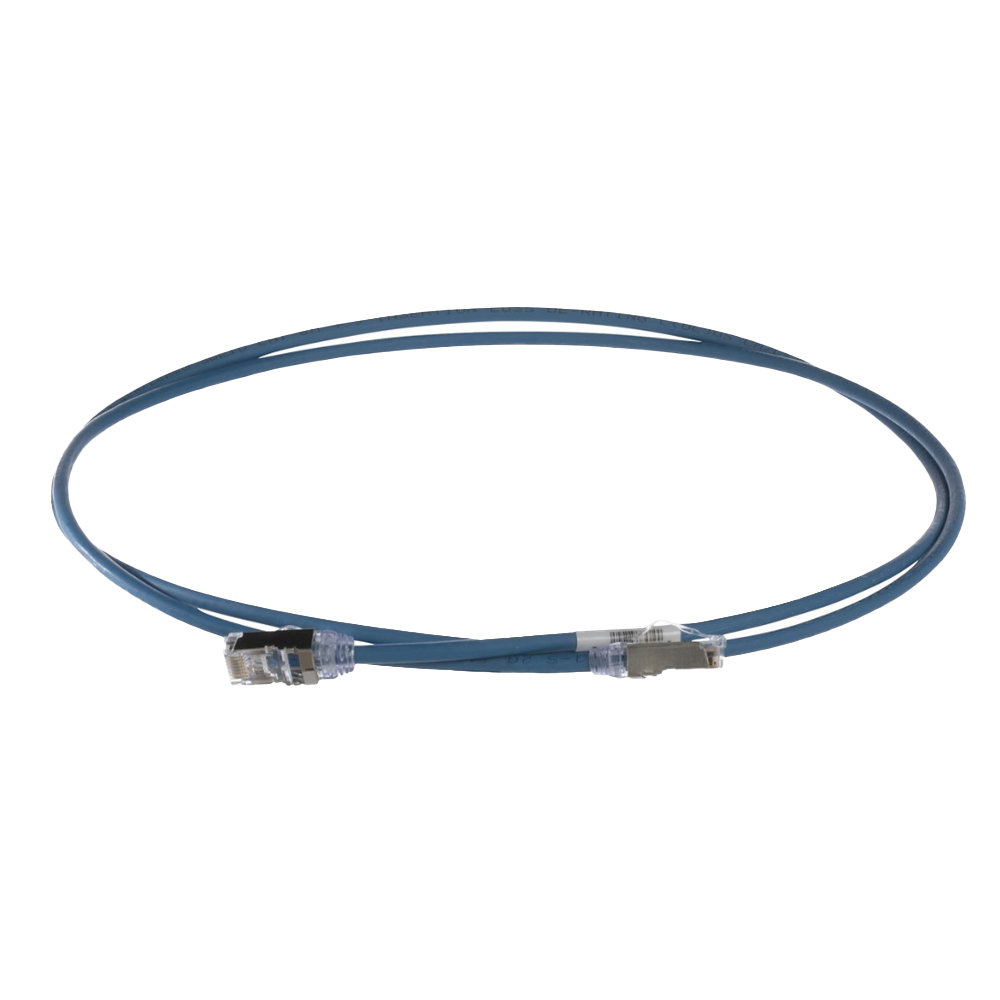 El Patch Cord blindado TX6A-28™ Cat 6A está fabricado con forro CM/LSZH blindado, de par trenzado, sólido, de 28 AWG con plugs modulares de rendimiento mejorado. El uso de un cable de 28 AWG asegura que la conexión tenga un diámetro pequeño, lo que facilita su instalación y trabajo. El pestillo patentado sin enredos evita enganches y proporciona una liberación fácil, lo que ahorra tiempo en movimientos, adiciones y cambios frecuentes. El cable de conexión tiene 3 metros de longitud, 0,185 pulgadas (4.7 mm) de diámetro nominal y es azul.