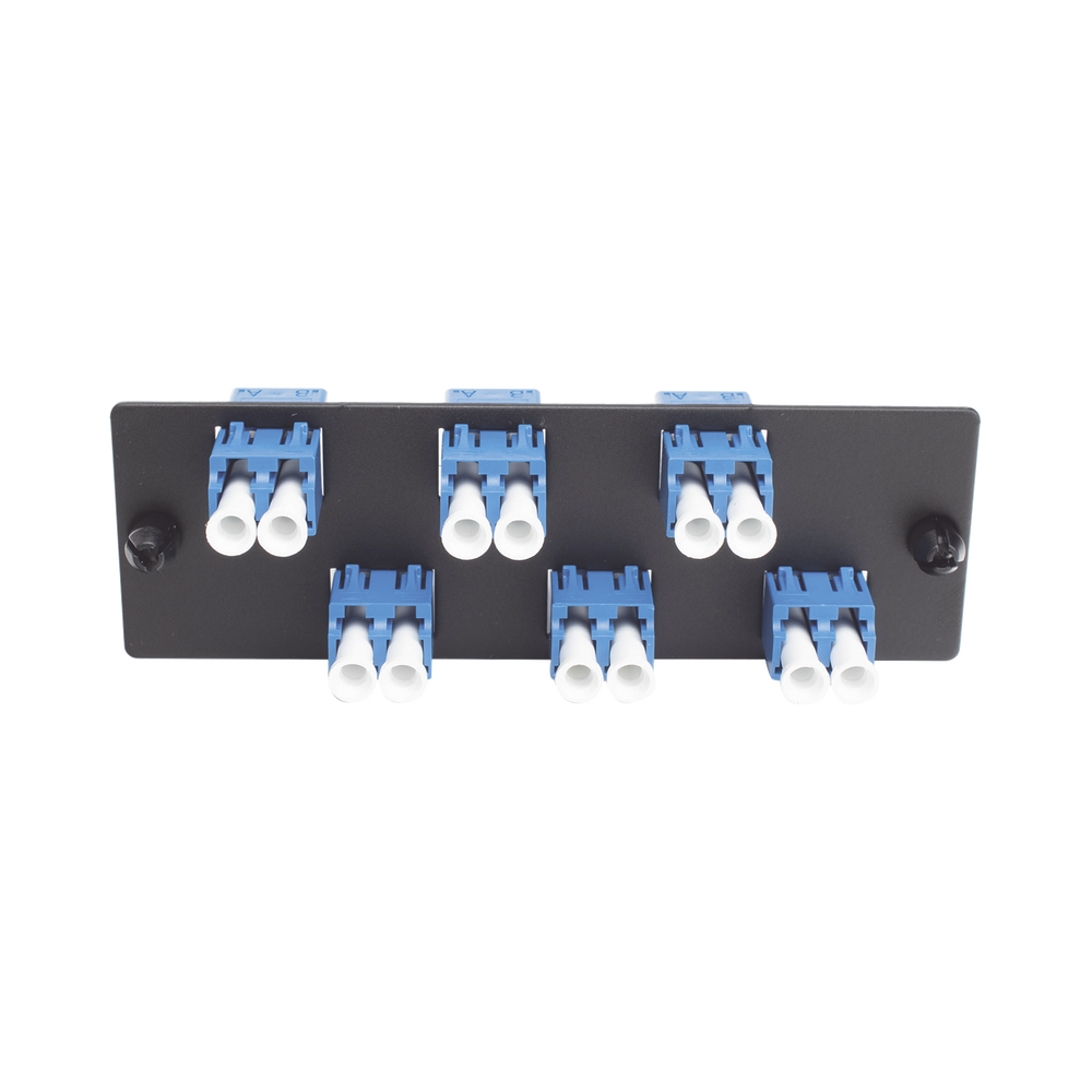 Placa Acopladora de Fibra Optica FAP, Con 6 Conectores LC Duplex (12 Fibras), Para Fibra Monomodo OS1/OS2, Color Azul