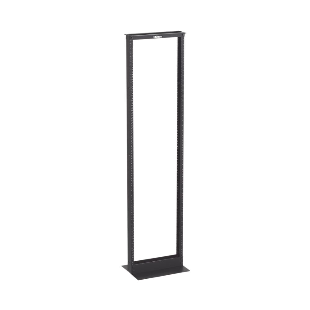 Rack de Dos Postes Estándar de 19 in, Rieles Numerados y Roscados #12-24, Fabricado en Aluminio, 45 Unidades de Rack, Color Negro